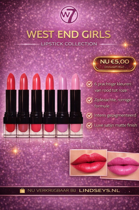 W7 - West End Girls lipstick - Vochtinbrengend en Langhoudend - Lippenstift
