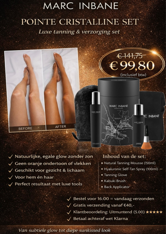 Artikelnummer: 2208De Pointe Cristalline is een luxe tanning set voor hem & haar, ideaal voor een natuurlijke, egale glow — ook in de winter.