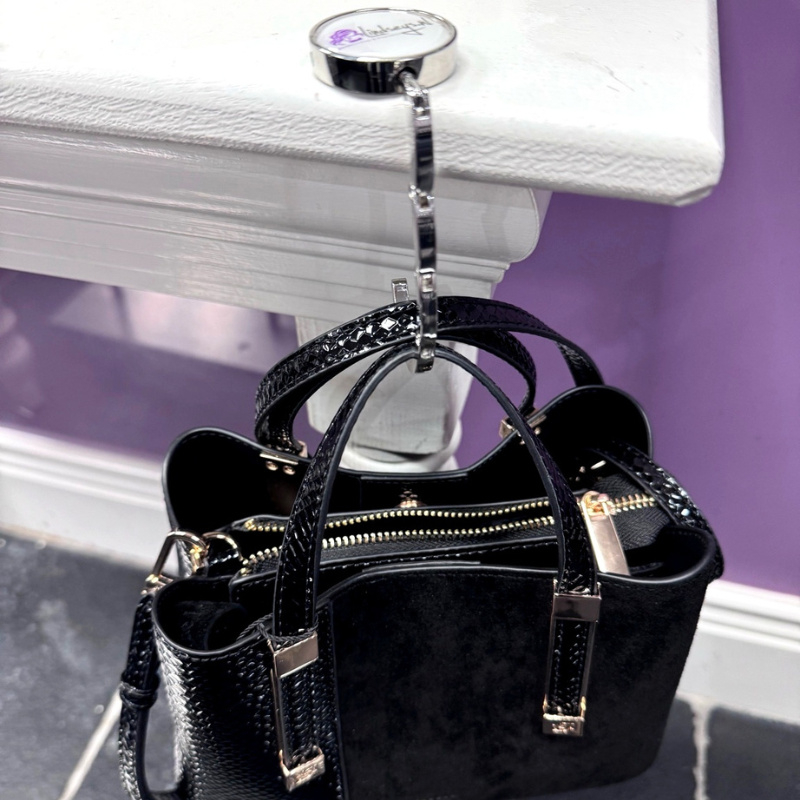 Een stijlvolle en praktische tassenhaak voor aan tafel. Ideaal voor in de salon, op kantoor, onderweg of in een restaurant. Met deze tassenhaak hoef je je tas nooit meer op de grond te zetten en blijft deze schoon, veilig en netjes binnen handbereik.