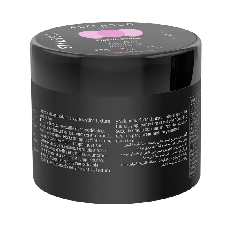 De Alter Ego Stylego Elastic Shape is dé stylingpaste voor iedereen die houdt van een natuurlijke look met beweging. Deze lichte, niet-verzwarende paste geeft het haar structuur, definitie en glans – zonder dat het hard, plakkerig of vet aanvoelt. Dankzij de elastische formule kan het haar de hele dag door eenvoudig opnieuw gestyled worden. Perfect voor zowel gecontroleerde, verzorgde looks als nonchalante, volumineuze stijlen.