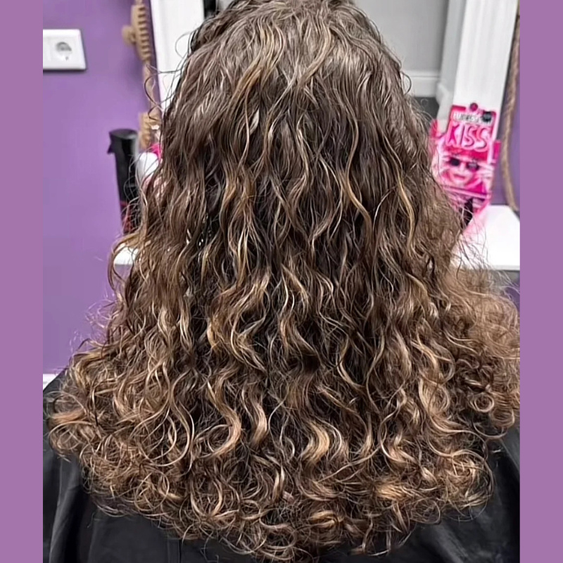 Glanzende, natuurlijk vallende, gehydrateerde krullen.
