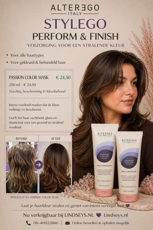 Geef je haar de perfecte combinatie van voeding, kleur en glans met de Alter Ego Passion Color Mask - Spicy Chocolate!